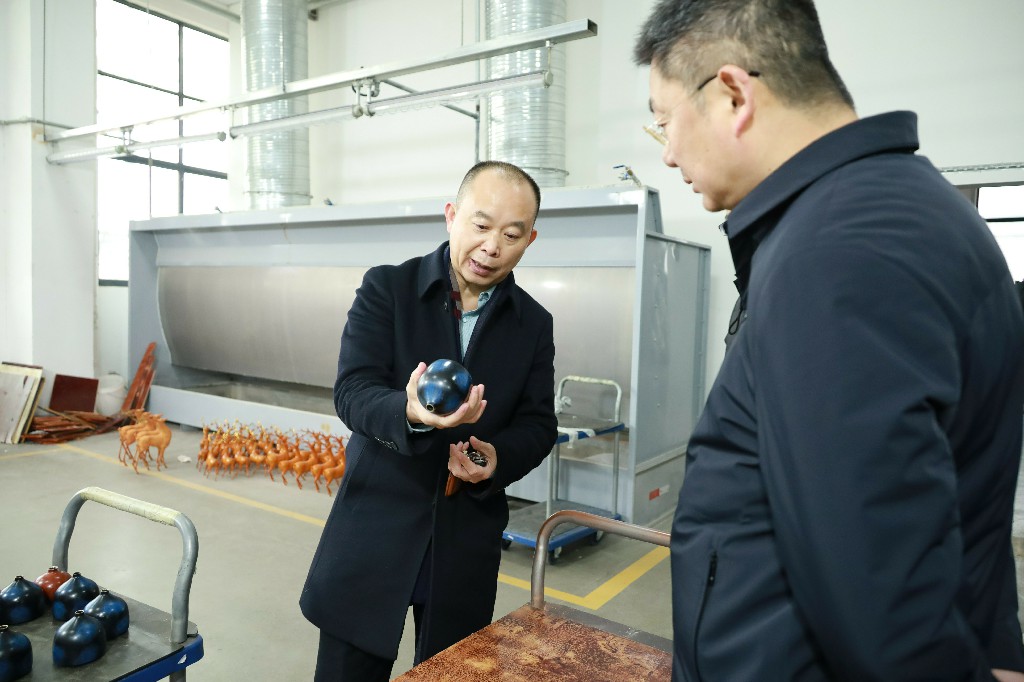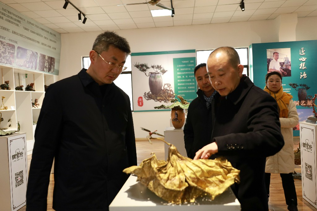 12月28日下午,銅官區(qū)區(qū)委書記王書春到銅官府銅藝文化產(chǎn)業(yè)園調(diào)研指導(dǎo),區(qū)委常委、常務(wù)副區(qū)長汪志祥陪同。銅官府趙敏及金星銅、大明銅匠負責(zé)人匯報了企業(yè)經(jīng)營發(fā)展情況。